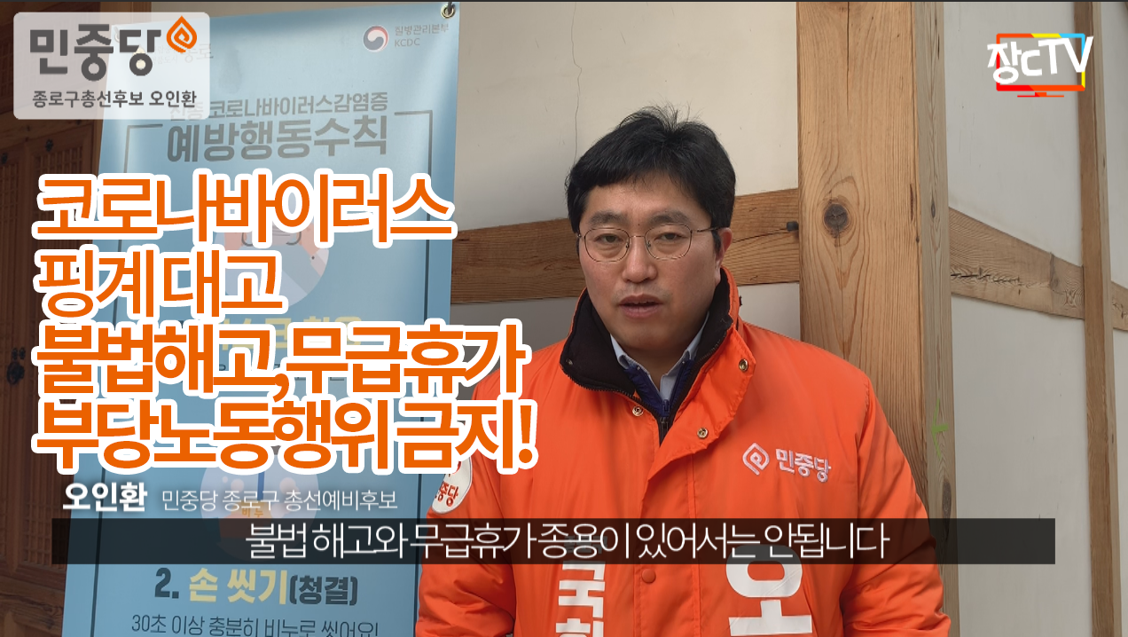 민중당은, 종로구 후보인 저 오인환은 모두가 살 수 있는 사회를만들기 위해 코로나바이러스 대책부터 함께 만들어 나갈 것입니다