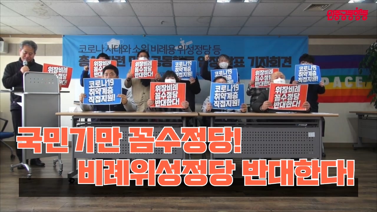 오늘 우리는, 신종 코로나 바이러스 유행에 따른 재난 상황, 그리고 개정 선거법의 취지를 심각히 훼손하는 거대 정당들의 비례 위성정당 수립 시도와 관련한 민중공동행동의 입장을 밝히고자 합니다.
